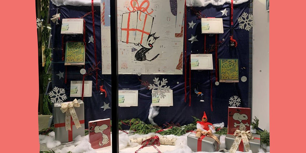 Welcome friends, to our final event this season at Labyrinth. We are all so happy to have Patrick McDonald here to celebrate The Art of Nothing. We also want to welcome Heather Achenbach who runs SAVE, A Friend to Homeless Animals. We were honored to have Patrick’s painting in our holiday window and to devote the side panel of the window to honor his work with animal shelters.