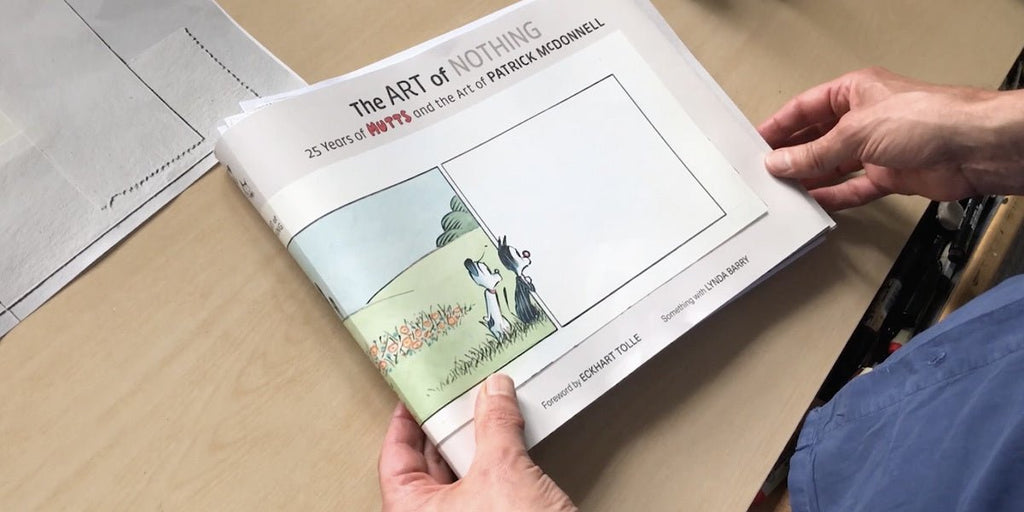 I had just received the preliminary, unbound version of my MUTTS anniversary book The Art of Nothing — scheduled for release on October 15 — and the MUTTS team thought is would be fun to give you a sneak peek.