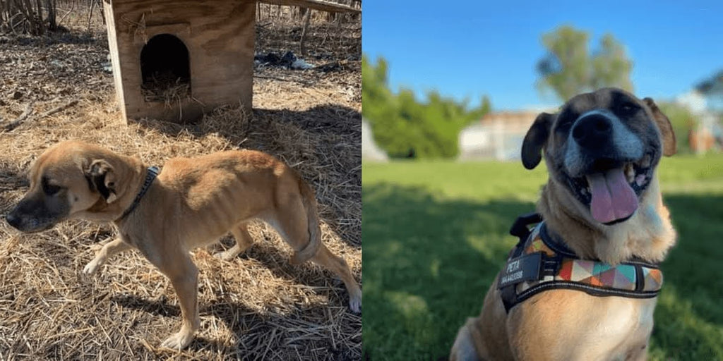 One of our recent victories was the liberation of Henry, Sandy, and Duke (and several other dogs) from a rural North Carolina property. PETA fieldworkers visited these dogs many times over a span of almost two years and first secured custody of Henry, a malnourished Chihuahua who was kept chained 24/7 in all weather extremes, among several large dogs who were also kept chained around the clock. It didn’t take long for us to place Henry with a loving adoptive family.