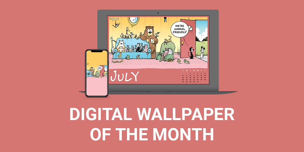 We also provide our fun digital wallpapers through the MUTTS blog — allowing you to enjoy them even if you miss the Newshletter. You can download the July 2025 wallpapers by clicking on the links below.