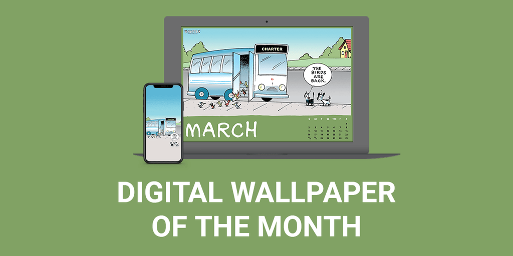 We also provide our fun digital wallpapers through the MUTTS blog — allowing you to enjoy them even if you miss the Newshletter. You can download the March 2025 wallpapers by clicking on the links below.