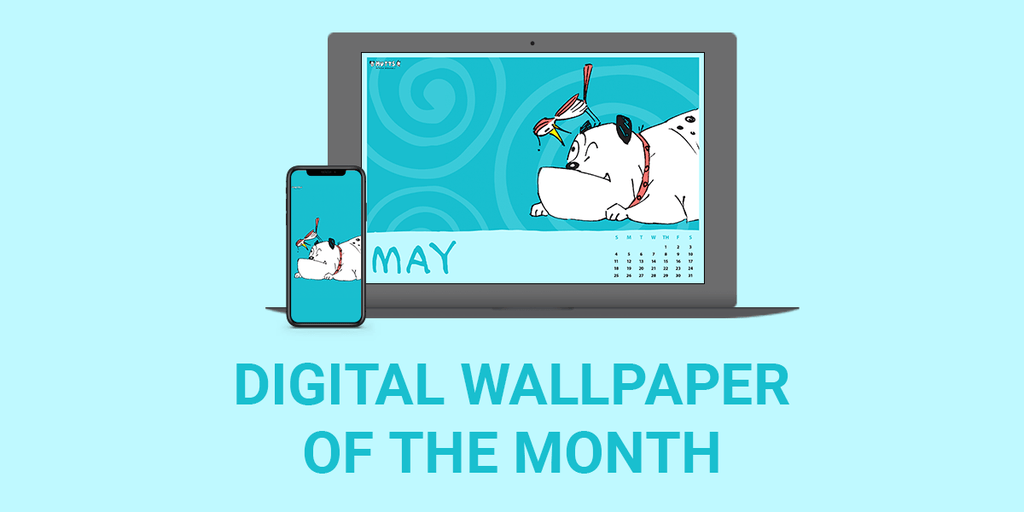 We also provide our fun digital wallpapers through the MUTTS blog — allowing you to enjoy them even if you miss the Newshletter. You can download the May 2025 wallpapers by clicking on the links below.