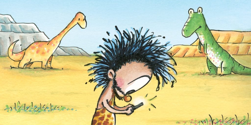 Today, Patrick McDonnell’s new book Tek: The Modern Cave Boy is officially released and available for purchase! And to celebrate, we’re hosting a drawing in which three lucky winners will receive signed copies of the book, plus other awesome goodies!